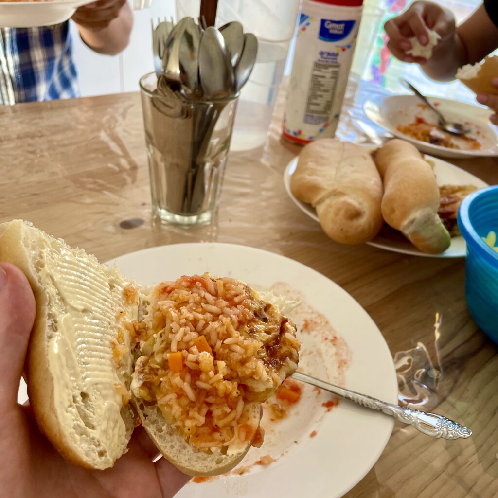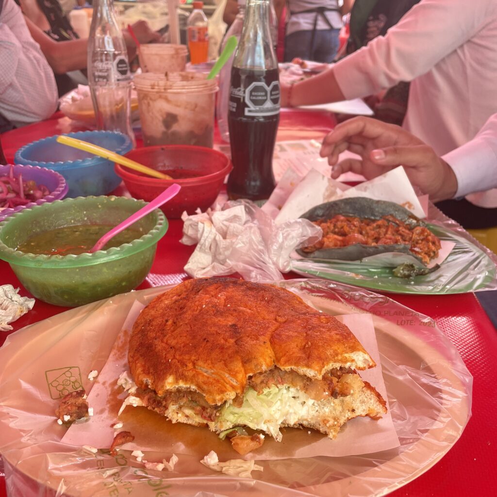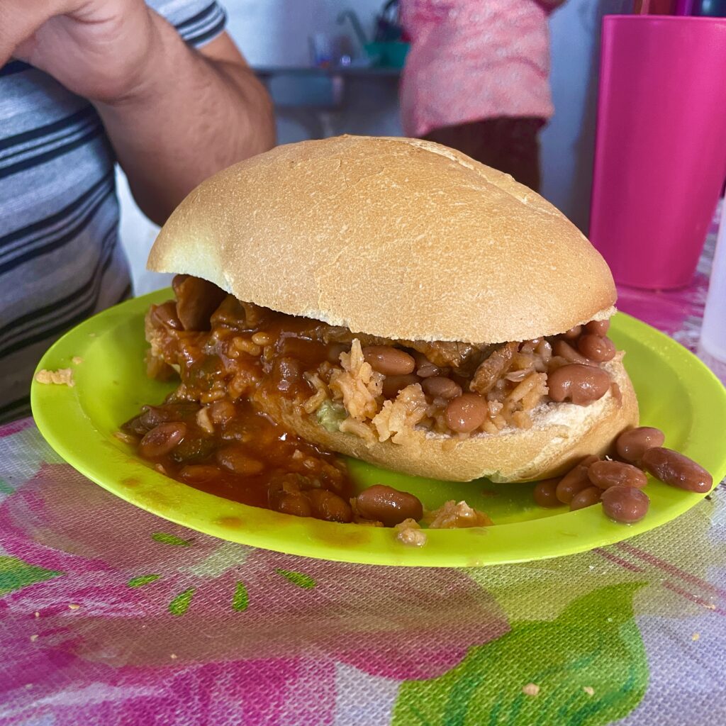 Dus ik zeg tegen die medewerker (hij was een jaar of 18 denk ik): “Huh!? Wat zeg je? Ik vraag jou om zo’n warmhouder, en je zegt dat die er niet is, maar dan pak je die aan het eind. Wat is dit voor actie?” Hij haalt zijn schouders op en zegt: “Niet mijn fout,” en verder lijkt het alsof hij ook niet zo goed weet wat te doen. Dus ik zeg: “Ik ga geen 6 koffie kopen, ik wil er één.” Ondertussen praat de geliefde ook met hem, maar ik ben dus best wel geïrriteerd, want het lijkt erop dat hij echt 6 koffie wilt gaan afrekenen. Ik zeg: “Ho, dat gaan we niet doen.” En ik vraag weer in gesproken Spaans: “Als ik het niet betaal, wie moet het dan betalen? Jij? Of je baas?” Ondertussen sust de geliefde mij, en zegt rustig te zijn. We betalen uiteindelijk voor twee koffie (100 peso’s is ongeveer 5 euro), maar ik ben het daar dus eigenlijk echt niet mee eens, want het is een principekwestie geworden. Ik zeg nog wel tegen de jongen dat het niet persoonlijk bedoeld is.