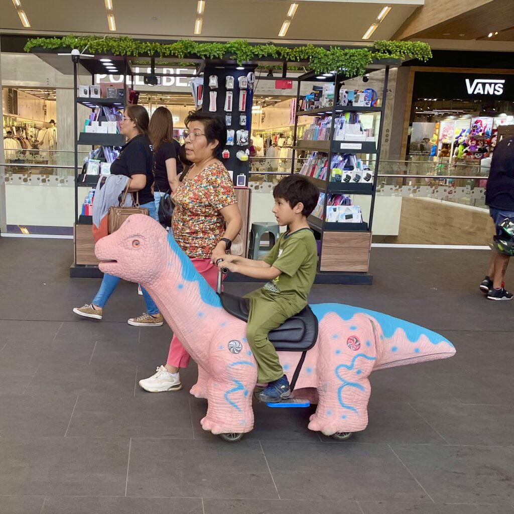 Bijna vergeten, maar er was dus wel nog iets grappigs gebeurd afgelopen weekend. De geliefde had een date geregeld voor een vriend en wij gingen dus met hen twee ergens eten. Ze hadden afgesproken op een van mijn lievelingsplekken (NOT): een winkelcentrum. Ik weet niet waarom, maar ik vind dat dus gewoon echt zielloze plekken, of ik word er eigenlijk direct een soort van ongelukkig van. Maar nu ging ik wel even mijn best doen om het winkelcentrum niet te veroordelen. Het was best wel luxe, met grote ketens, en hier was ook een soort van hele speelafdeling; je kon onder andere een spaarpot beschilderen. Vond ik dan weer best wel vermakelijk. Ook is het op deze plekken normaal dat je kan rondrijden op een soort van dinosaurus, dan kunnen ze in Nederland nog wel even iets beter hun best doen qua entertainment.