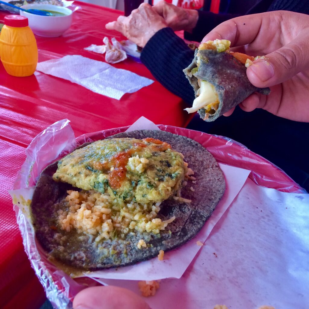 Zondag is de dag waarop je op elke hoek van de straat barbacoa kan eten. Soep en tacos van geit of schaap. Erg lekker.